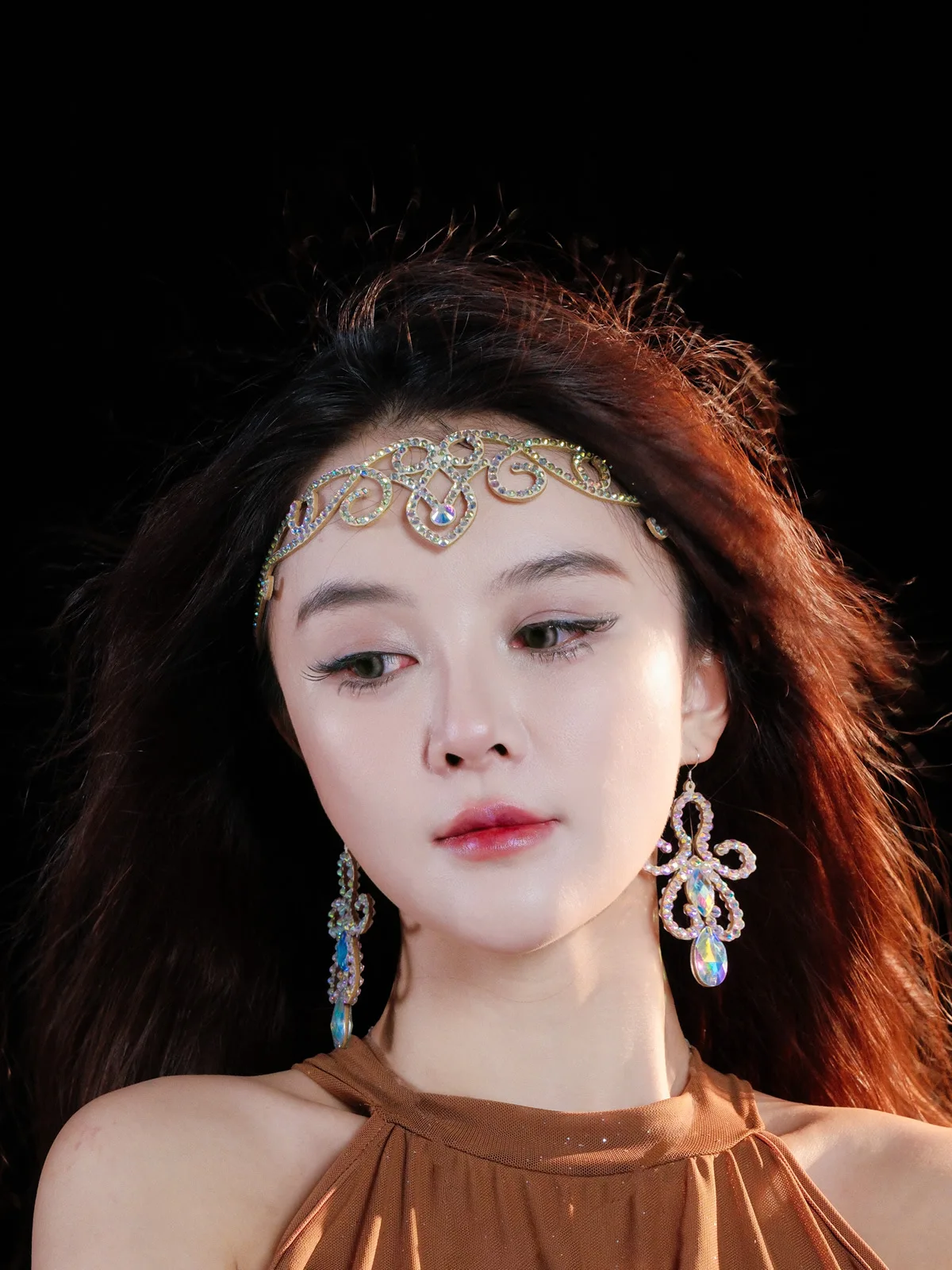 Coiffure scintillante de danse du ventre, bijoux de compétition, accessoire de danseuse, coiffure de danse brillante, Costume de spectacle sur scène, spectacle égyptien |