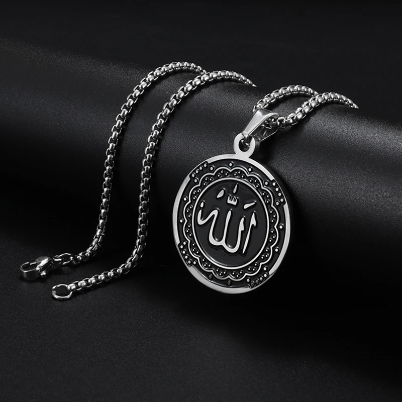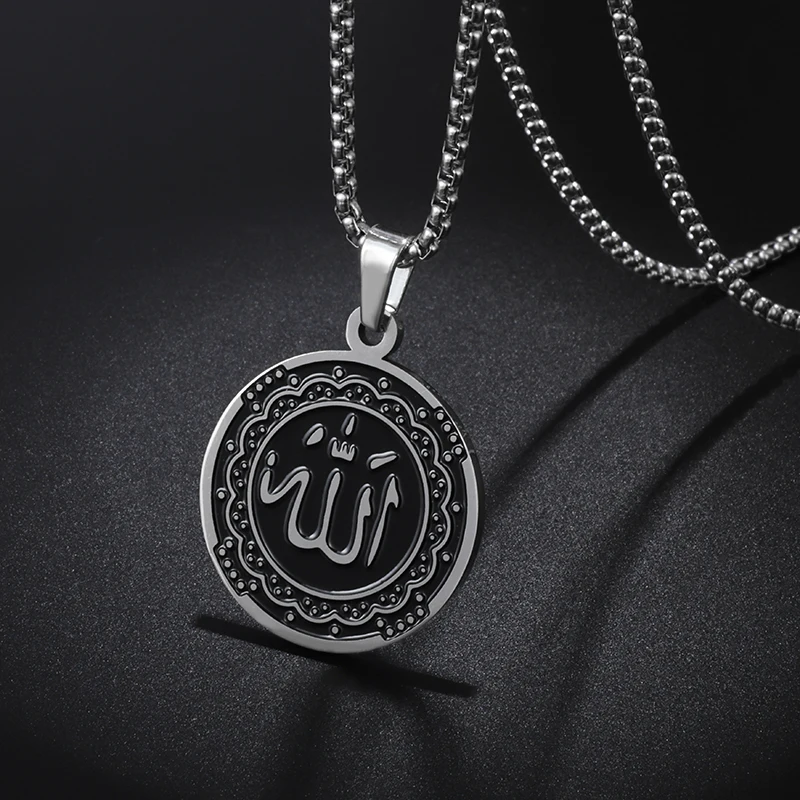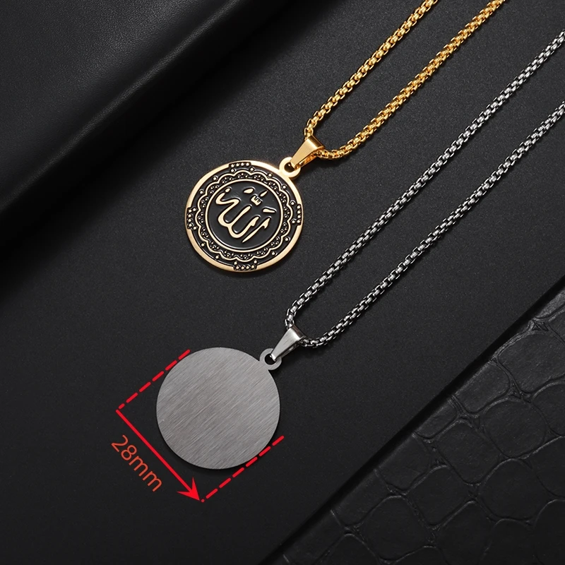Collier Allah pour hommes, pendentif rond en acier inoxydable, couleur or, bijoux islamiques, amulette, cadeaux musulmans |