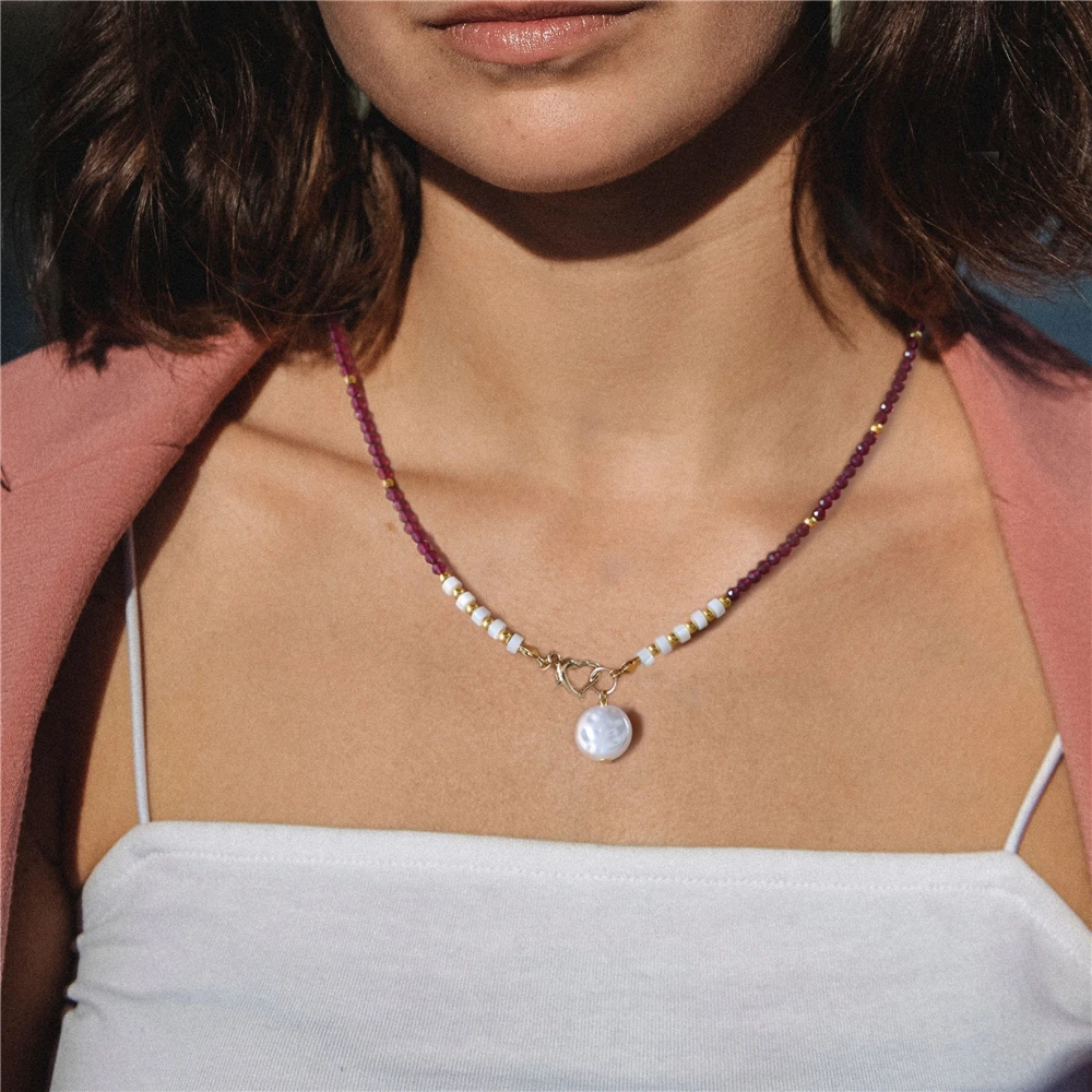 Collier avec Pendentif en Perles Naturelles pour Femme, Petite Pierre de Clip d'Émeraude, Entretoise de Document en Or, en Forme de Cœur |