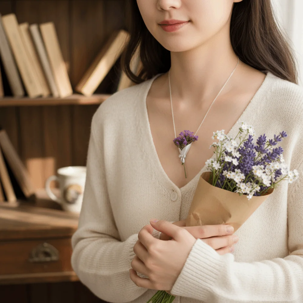 "Ce collier est vraiment magnifique ! J'adore le mélange de l'argent et du cuivre qui donne un effet très élégant. La chaîne est de bonne qualité et se porte très bien. Le seul petit bémol est qu'il faut parfois ajuster le nœud de fleurs pour qu'il soit bien positionné, mais c'est un détail. Dans l'ensemble, c'est un très beau bijou qui plaira sûrement à toutes les amoureuses des fleurs !"