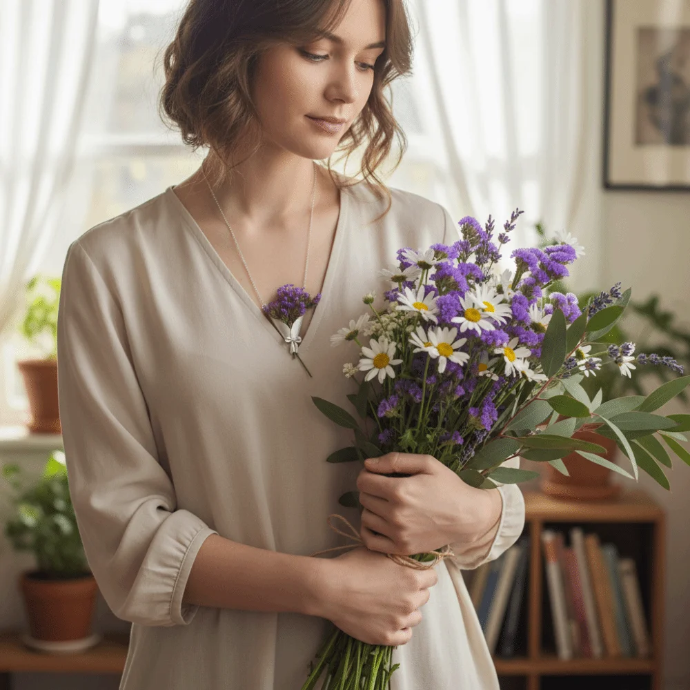 "Ce collier est tout simplement magnifique ! La qualité des matériaux est remarquable et les fleurs en argent donnent un rendu vraiment élégant. J'ai reçu de nombreux compliments quand je le porte. Le seul petit bémol est que la chaîne de clavicule est un peu courte pour moi, mais cela reste un détail. Dans l'ensemble, je suis très satisfaite de cet achat et je le recommande sans hésiter !"