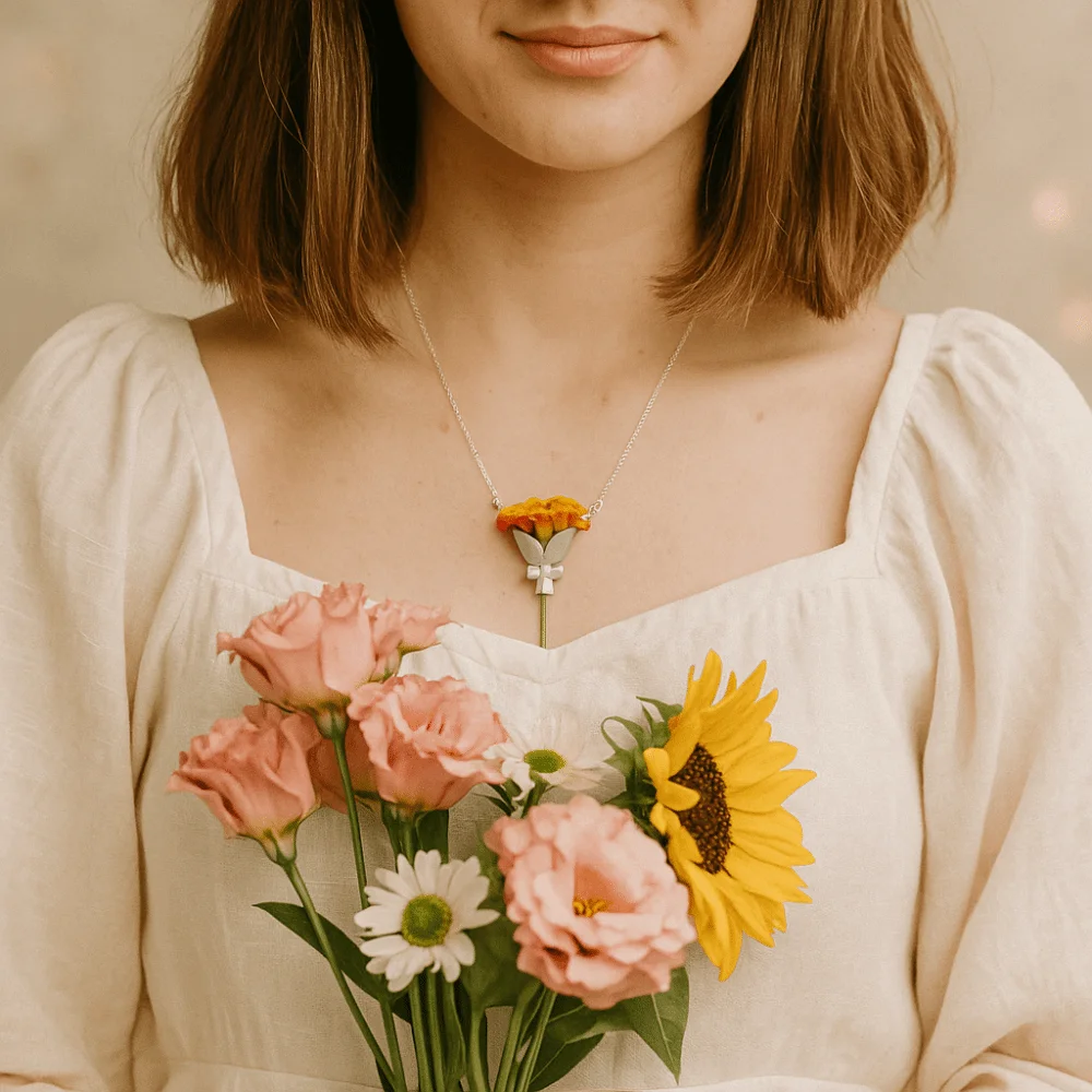 Collier Bouquet de fleurs en argent, en cuivre, peut être organisé avec des fleurs, chaîne de clavicule, nœud géométrique, bijoux pour la saint-valentin |