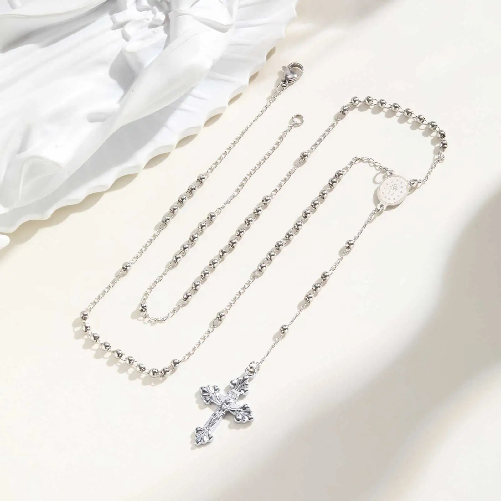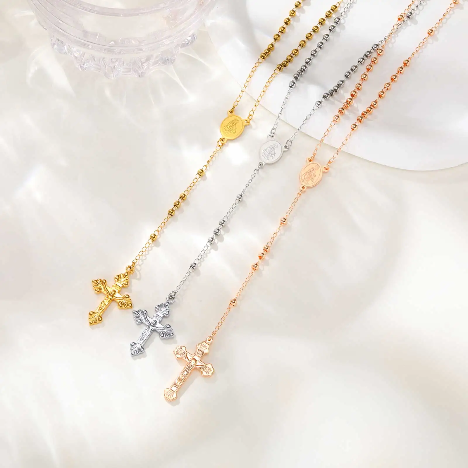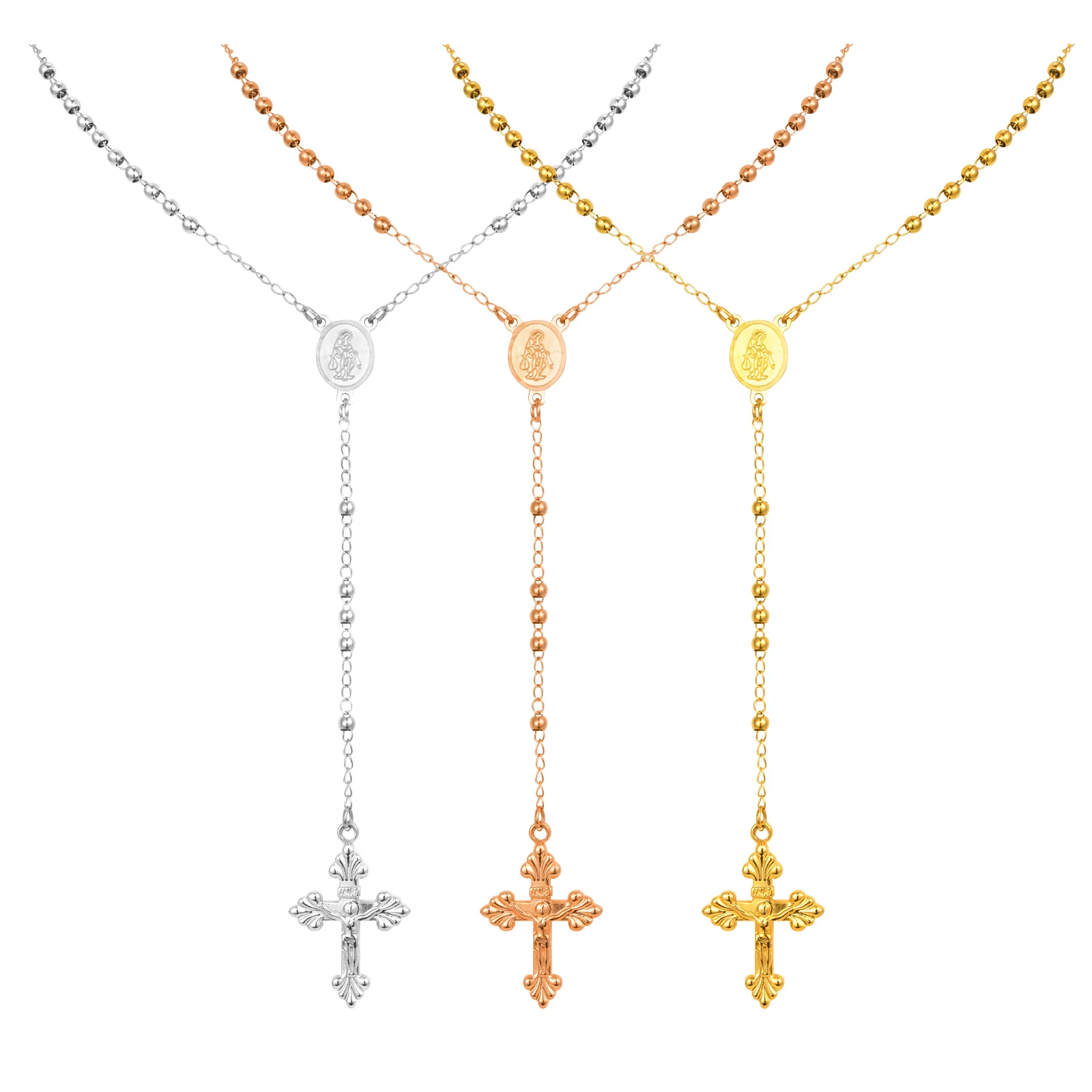 Collier chapelet de perles de prière en acier inoxydable avec pendentif croix, collier de la vierge marie à longue chaîne en forme de Y, bijoux religieux |
