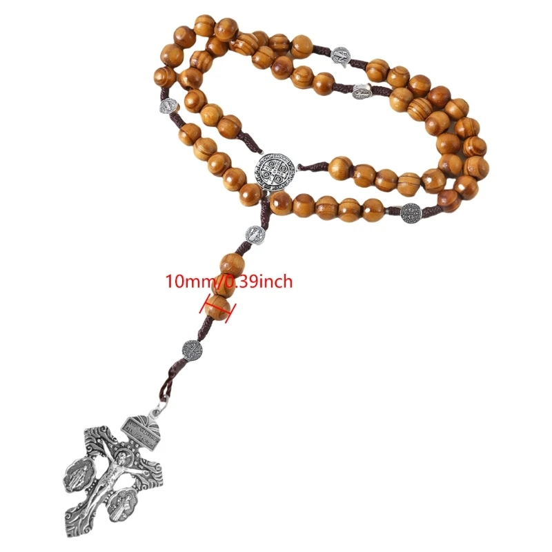 Collier chapelet en chaîne perles bois avec Crucifix pardon, accessoire culte catholique |