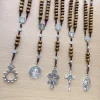 Collier chapelet en chaîne perles bois avec Crucifix pardon, accessoire culte catholique