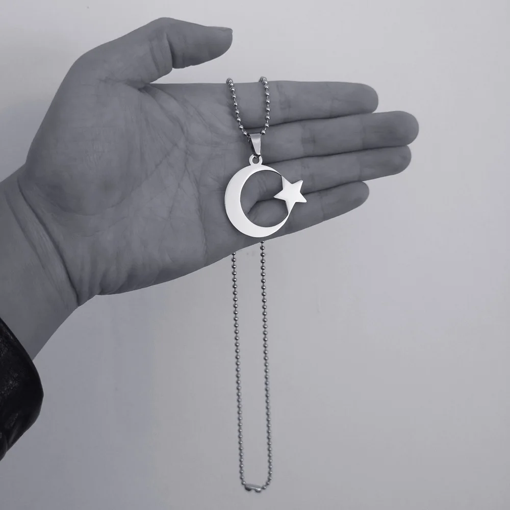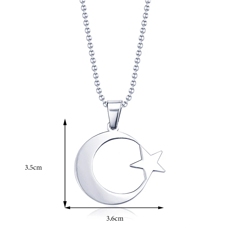 Collier croissant d'étoile en acier inoxydable pour hommes et femmes, pendentif amulette musulmane islamique, accessoires de bijoux religieux turcs |