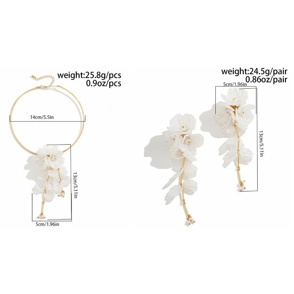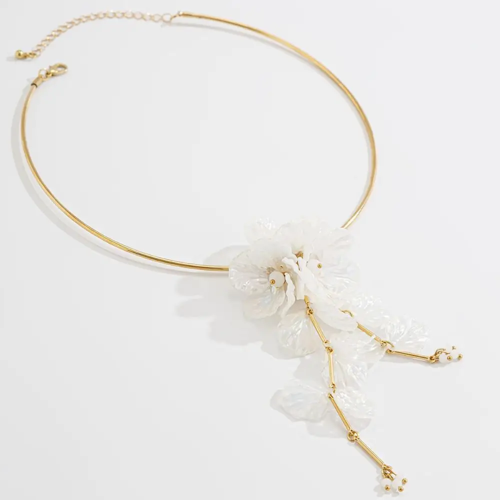 Collier de fleurs 3D élégant, boucles d'oreilles de luxe, pétales délicats, longs pompons, bijoux en fer et plastique, collier de clavicule à fleurs blanches |