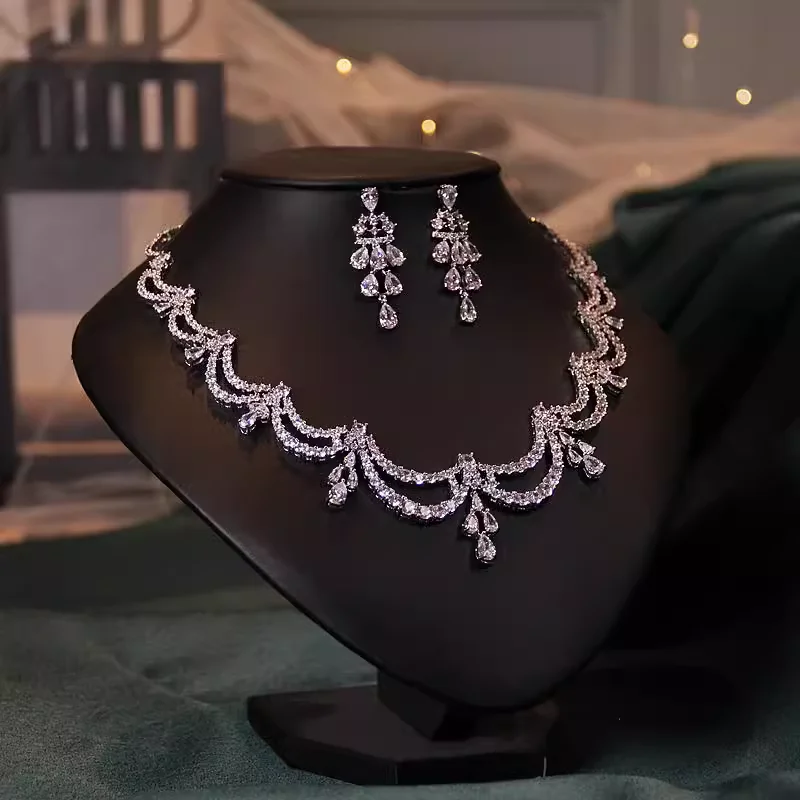 Collier de mariée en zircon, bijoux de haute qualité, accessoires de robe de luxe légers, ensemble de boucles d'oreilles, ornements, cadeau de noël |