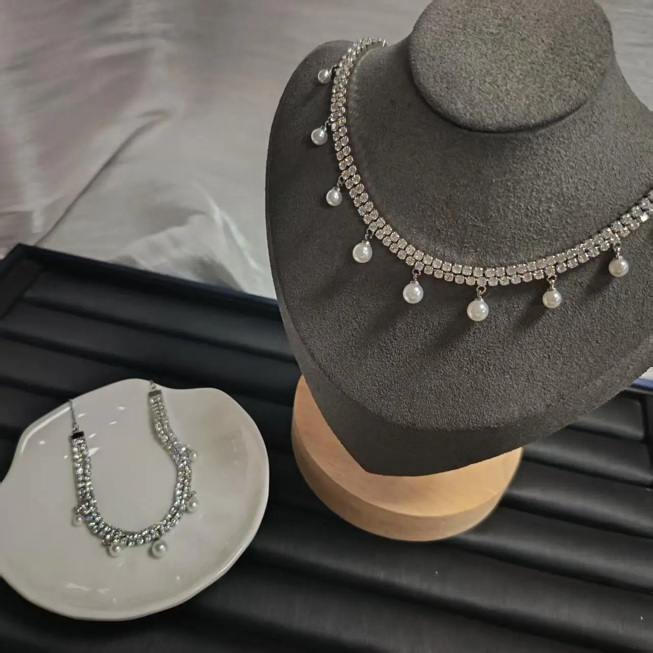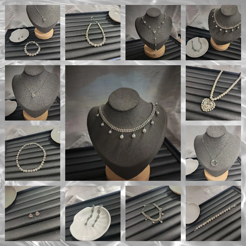 Collier de perles de luxe léger, boucles d’oreilles, bracelets, bijoux, design élégant, vitrine de tempérament.