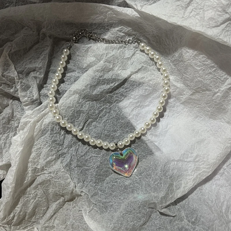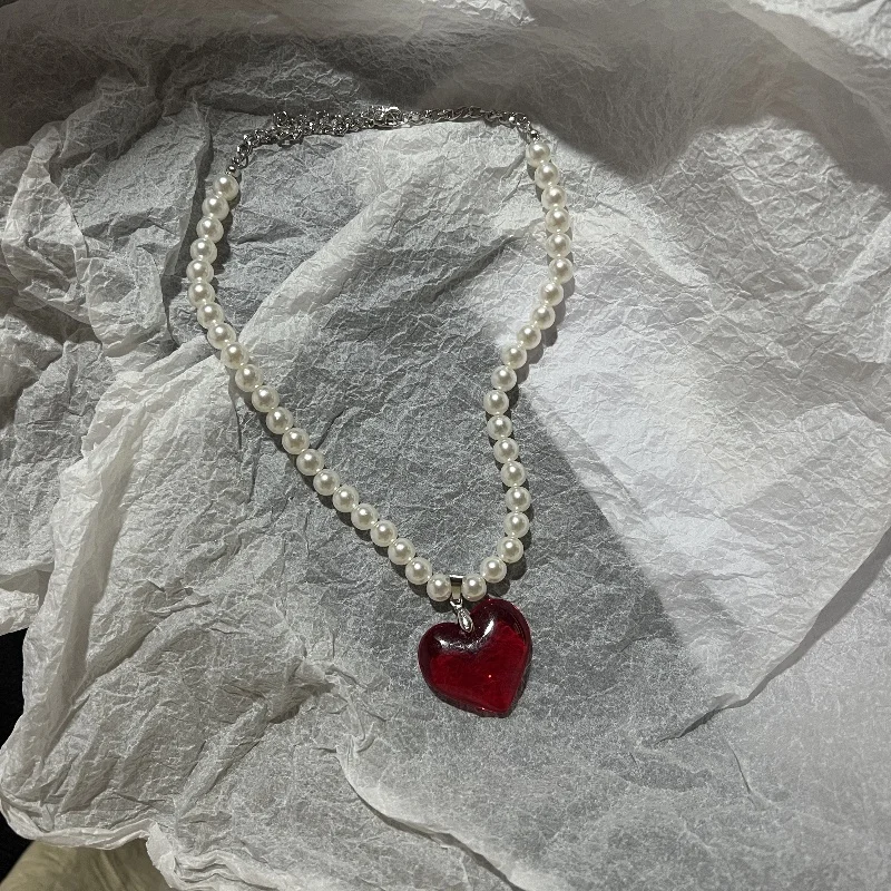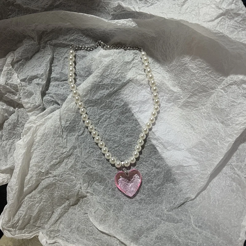 Collier élégant avec pendentif en forme de cœur d'amour pour femmes, bijoux Y2K, ras du cou en perles d'eau douce |