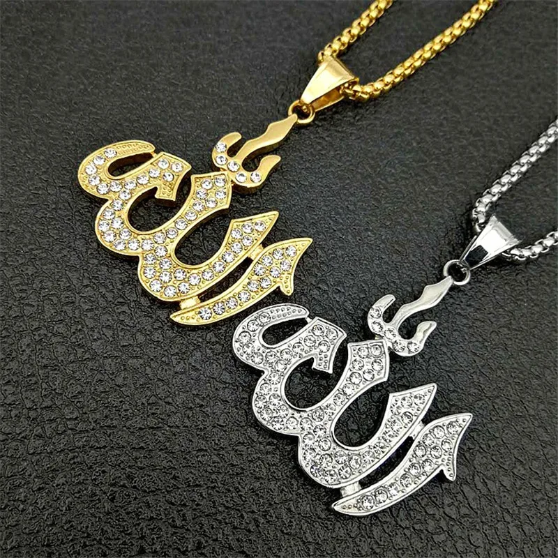 Collier Hip Hop avec pendentifs islamiques, pour hommes et femmes, en acier inoxydable, bijoux musulmans, vente en gros, livraison directe |