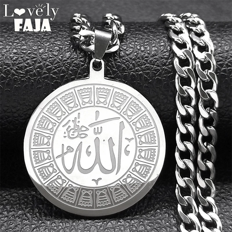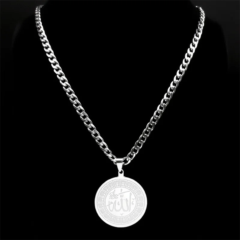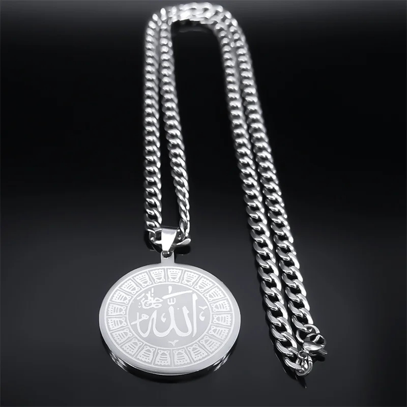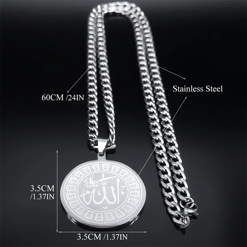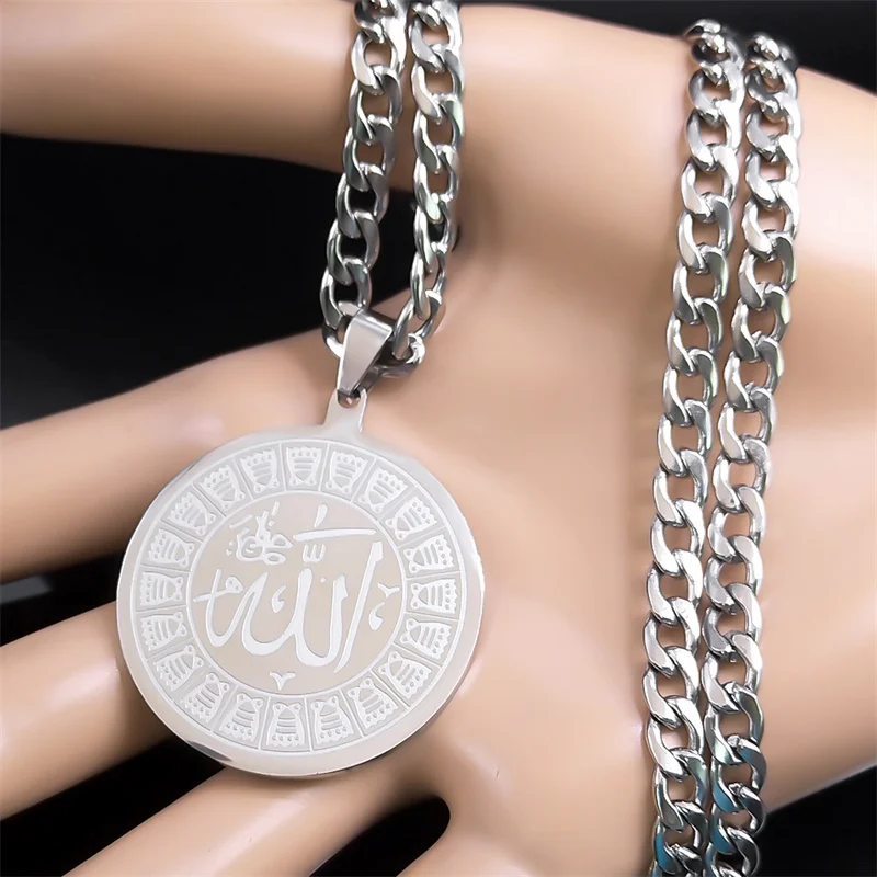 Collier Hip Hop en Acier Inoxydable pour Homme et Femme, Bijou Musulman Islamique, avec Dieu Arabe, Document Argenté, Rond, pour la raq, N2933S03 |