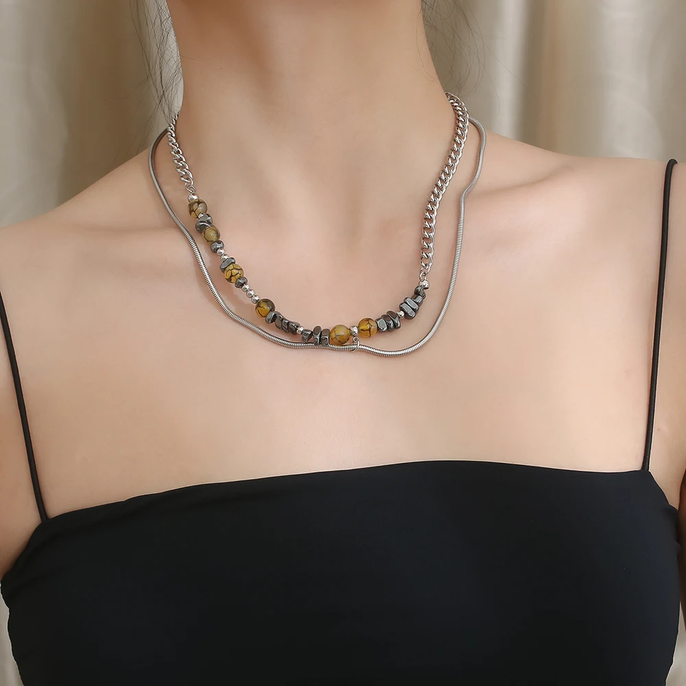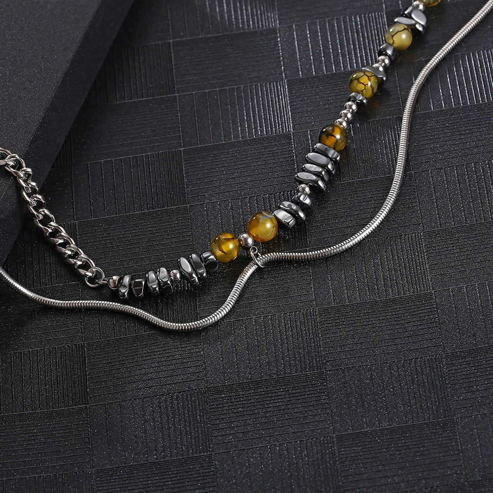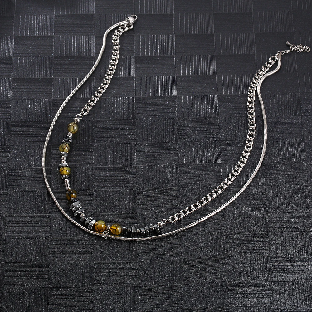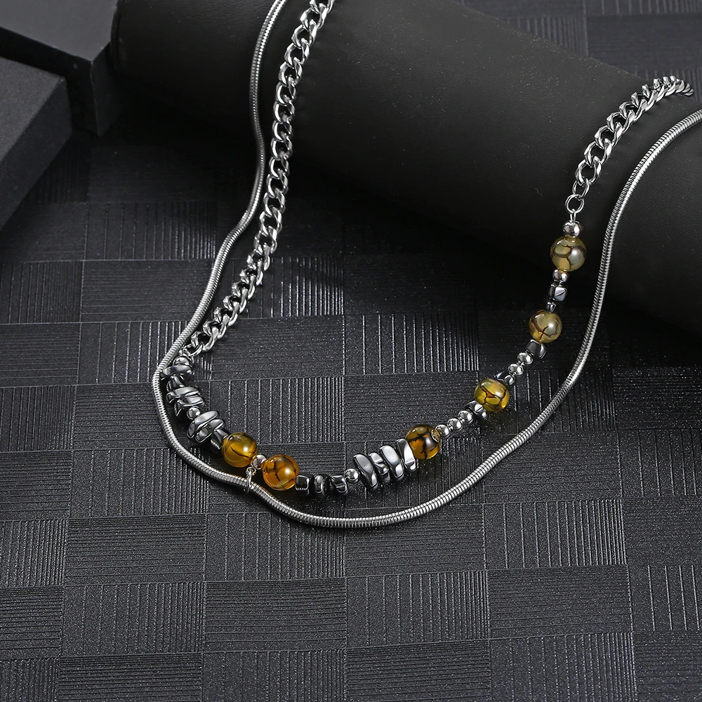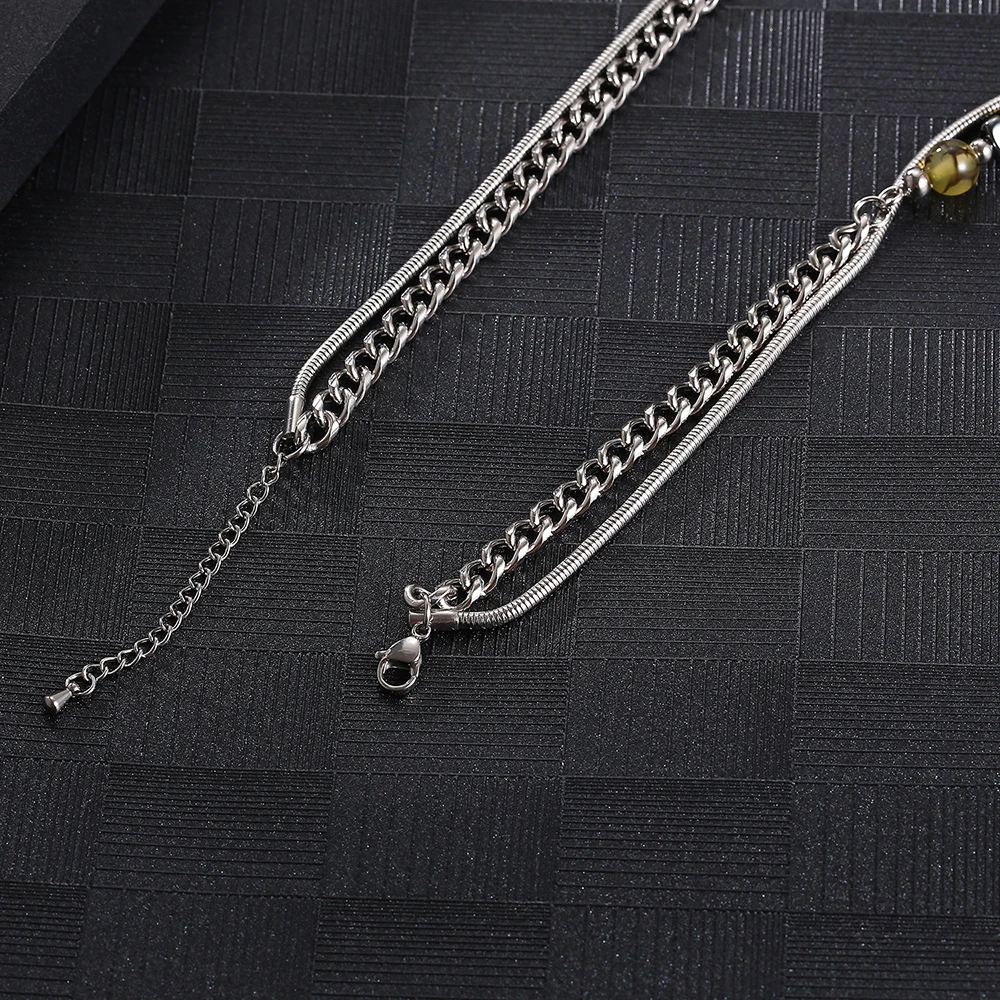 Product Name: Stainless Steel Silver Round Bead Snake Chain Fashion Splicing Pendant Necklace