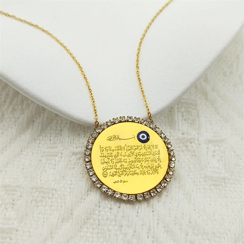 Collier pendentif yeux maléfiques pour femmes et hommes, bijoux en biscuits, acier inoxydable, or, document Allah, islamique, musulman, arabe, budgétaire turc