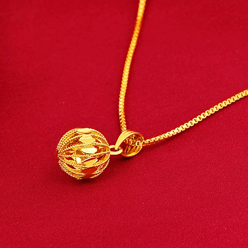 Collier plaqué or véritable 24 carats avec boule brodée, pendentif rond, bijoux en or pur 999 18 carats, diffusion en direct thaïlandaise, beaucoup des mêmes