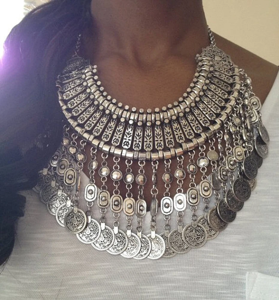 Collier ras du cou bohème pour femmes, ensembles de bijoux indiens, ethniques, gitans, Boho, Vintage, pièces de monnaie, boucles d'oreilles |