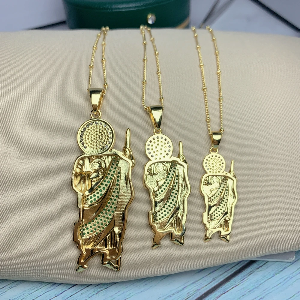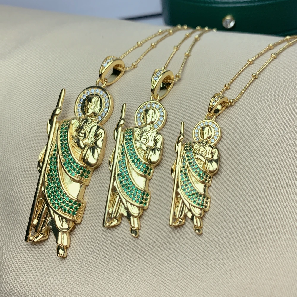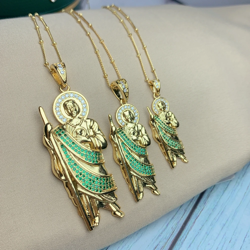 Collier religieux St Jude Thaddeus Tadeo, bijoux en métal Zircon, grand pendentif, cadeaux de luxe pour femmes |