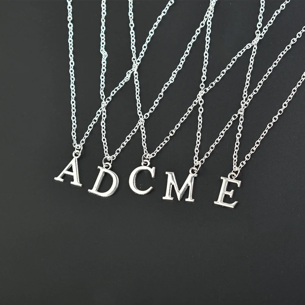 Colliers avec pendentifs en forme de lettres de l'alphabet anglais pour femmes, couleur argent, bijoux en métal, chaîne initiale Simple, ras du cou |