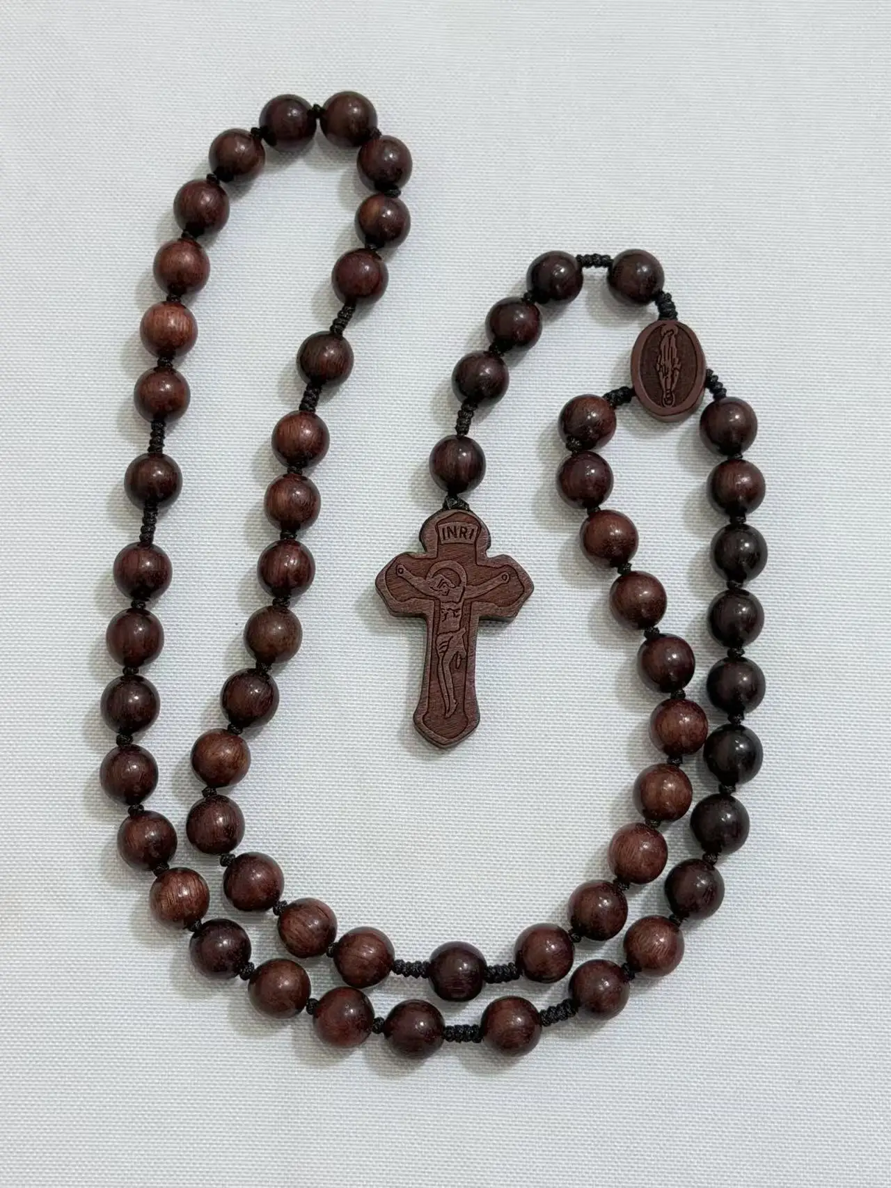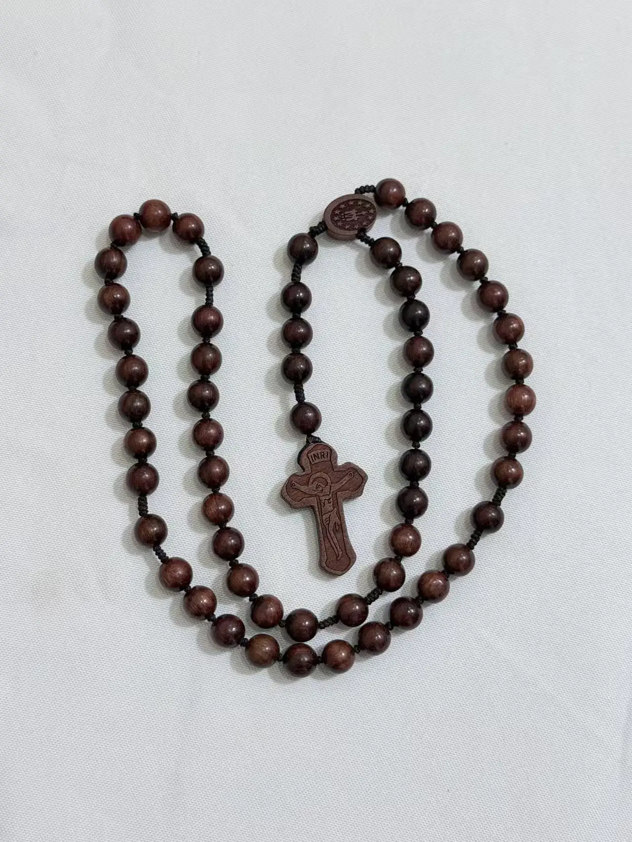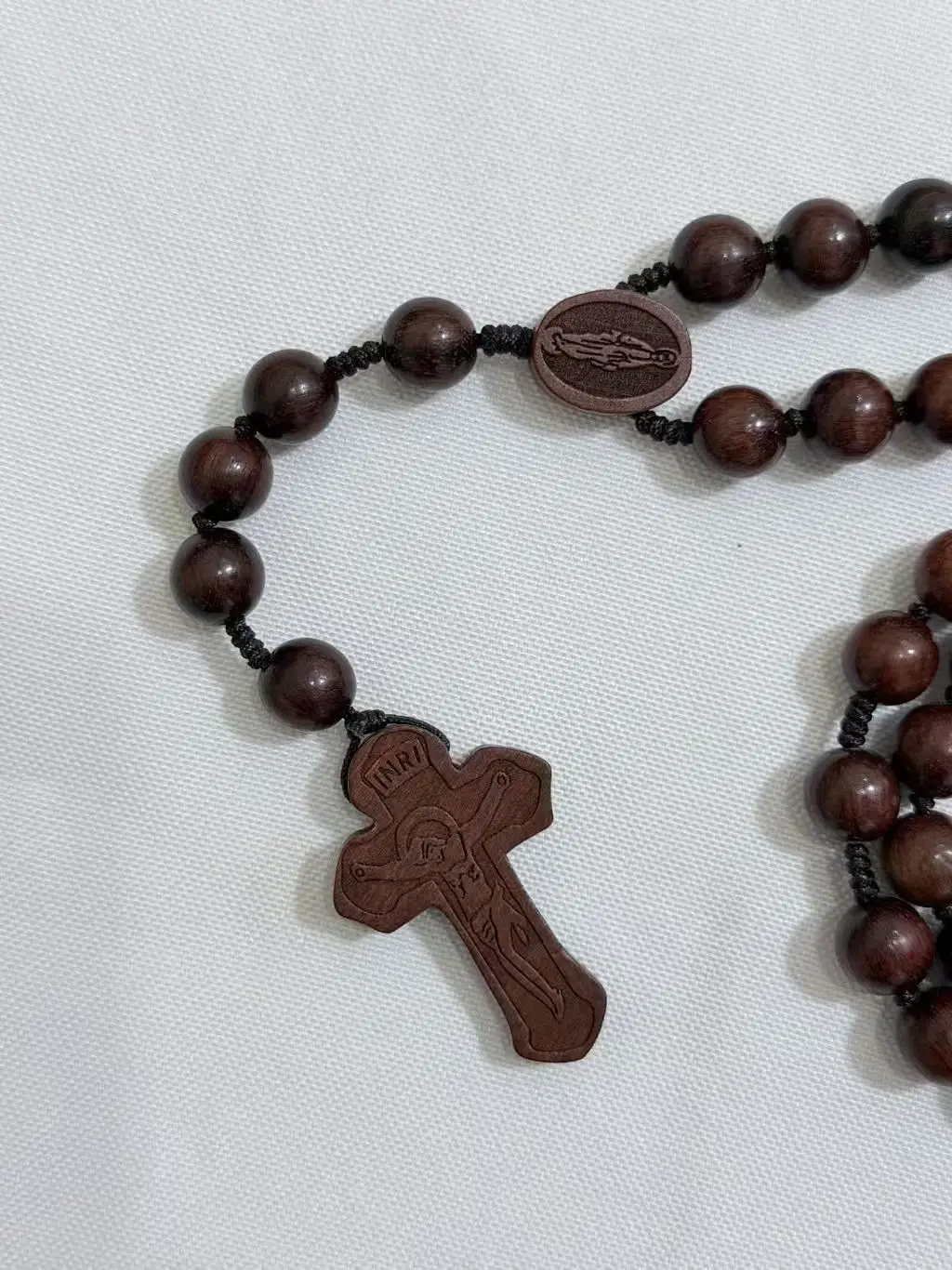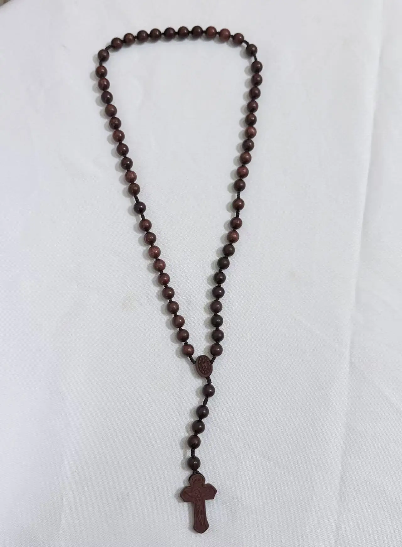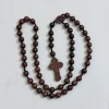 Colliers chapelet en perles de bois catholique pour femmes, pendentif croix Crucifix chrétien INRI, longue chaîne pour hommes, bijoux de prière religieux |