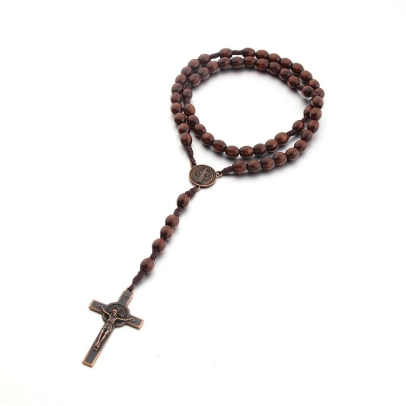 Colliers de chapelet en bois faits à la main Colliers de croix catholiques Cadeau de prière chrétienne