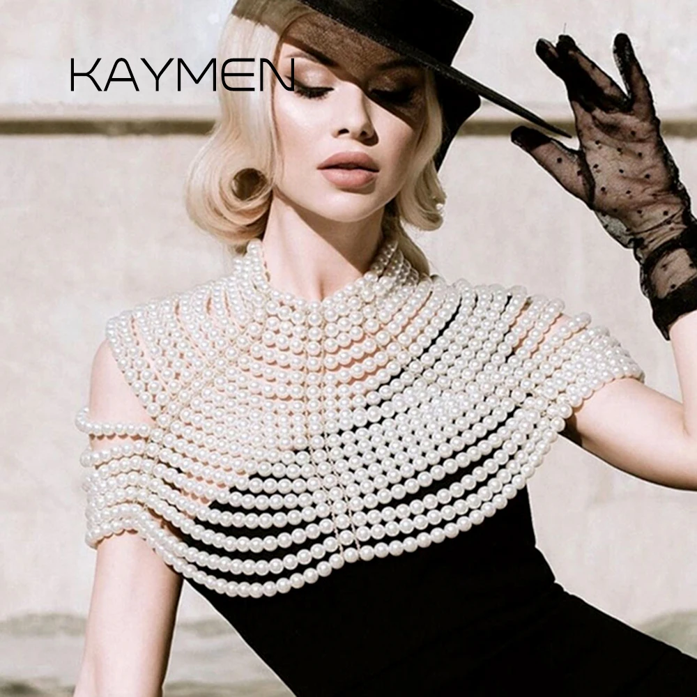 Colliers de luxe en perles pour femmes, chaîne de corps, épaule, hauts à la mode, colliers de perles, accessoire de bijoux populaire