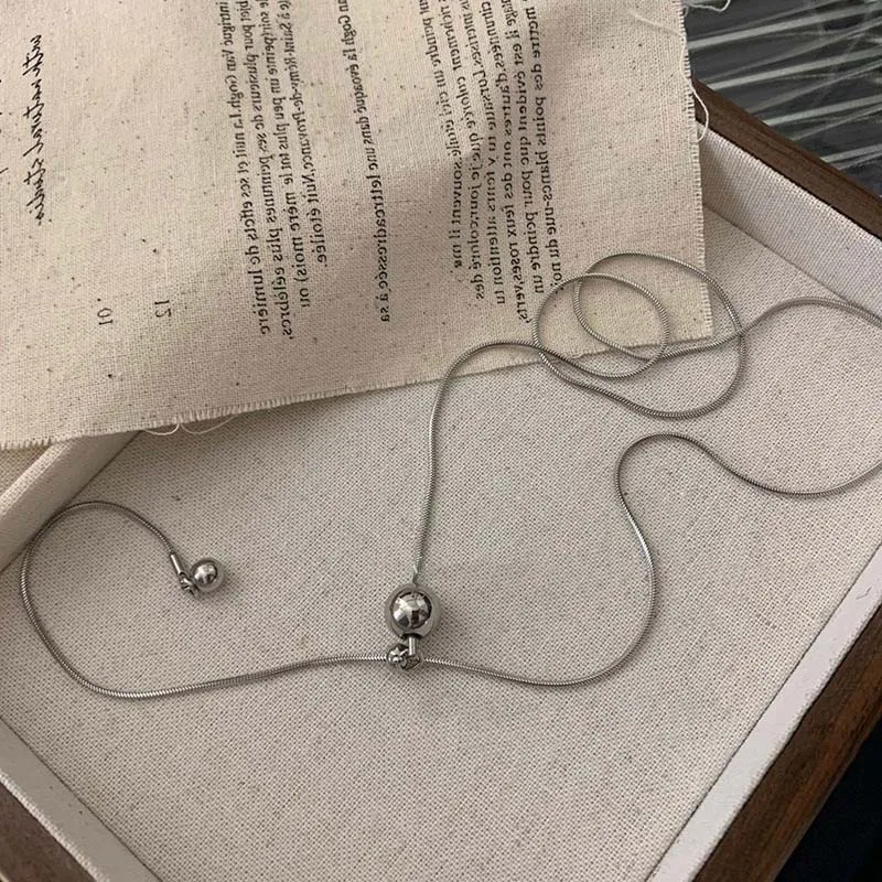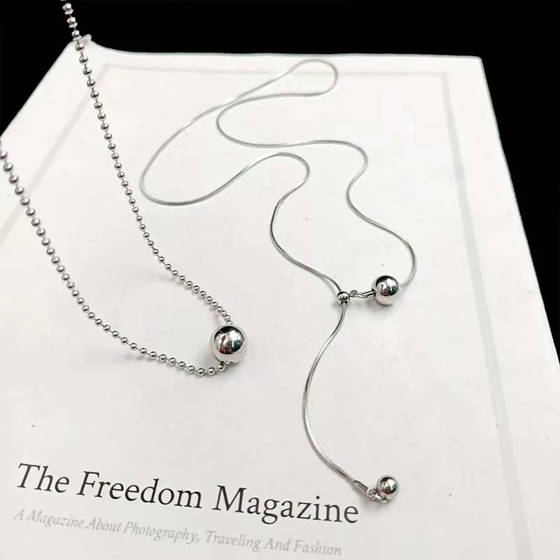 Colliers de perles en acier inoxydable pour femmes, couleur argent, à la mode, longue chaîne en os de serpent, bijoux cadeaux de fête |