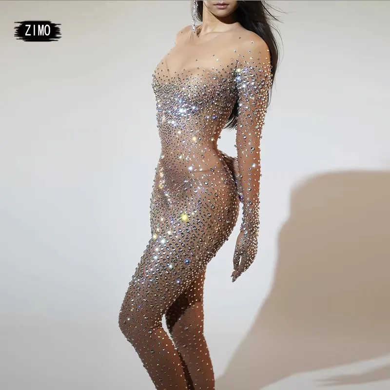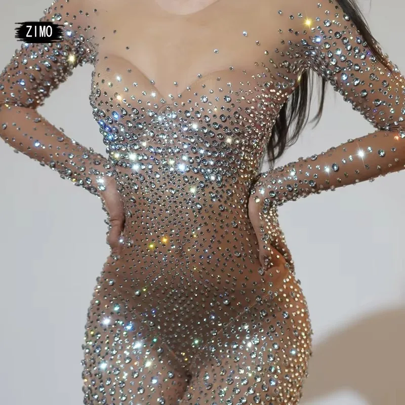 Combinaison à manches longues avec biscuits pour femme, maille transparente, fête d’anniversaire, club, chanteur, scène, spectacle, danse, sexy, Rotterdam, Kle, 303