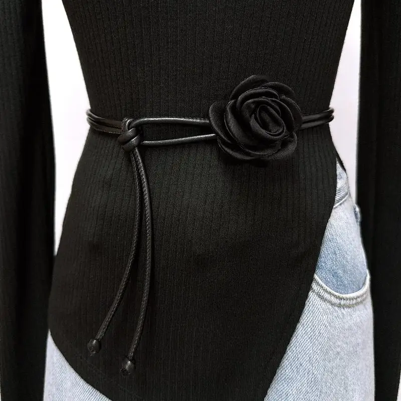 Corde de taille florale bohème pour femmes, robe fine, jupe, manteau, chaîne de taille, nœud, ceinture, décoration