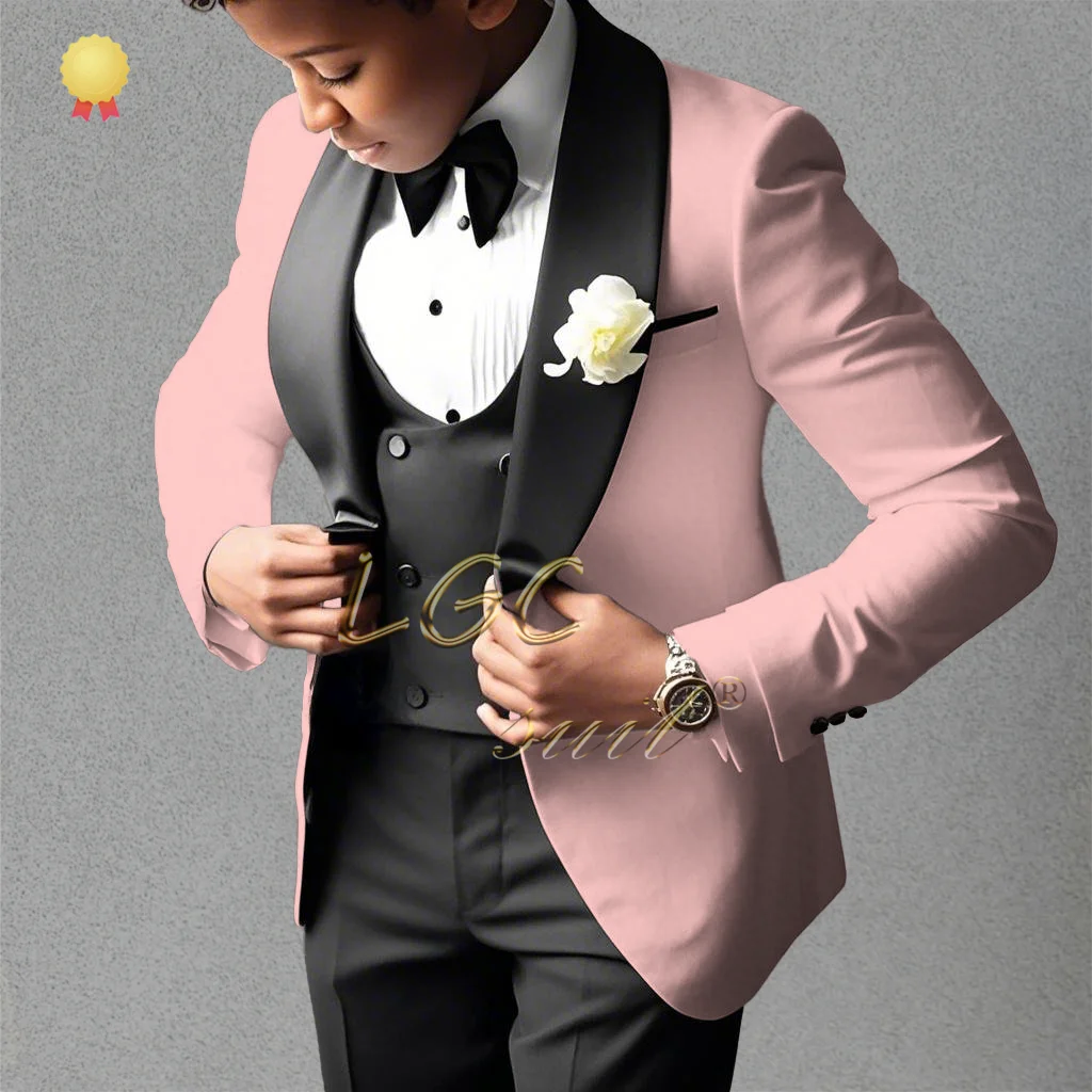 Costume 3 pièces beige pour garçon avec couture classique moderne et confortable, idéal pour les mariages, les banquets, les anniversaires et les spectacles