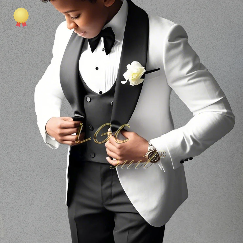 Costume 3 pièces beige pour garçon avec couture classique moderne et confortable, idéal pour les mariages, les banquets, les anniversaires et les spectacles |