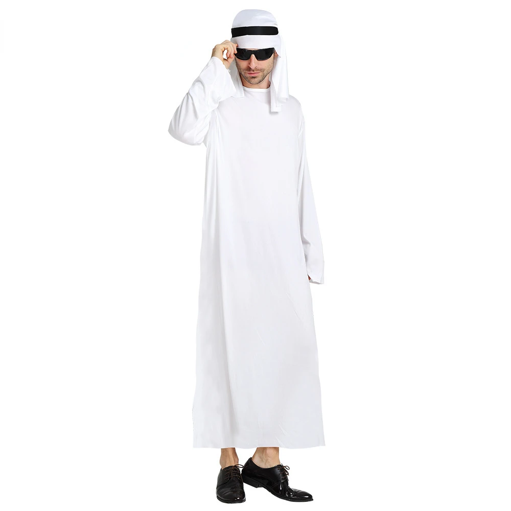 Costume arabe blanc pour hommes, Robe fantaisie en tissu arabe, Cosplay, noël et Halloween |