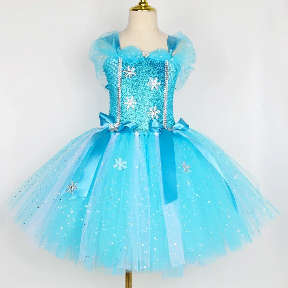 Costume Elsa à paillettes pour filles, déguisement de princesse pour Halloween, noël, fête d'anniversaire, reine des neiges, robe Tutu en Tulle, robe de bal |