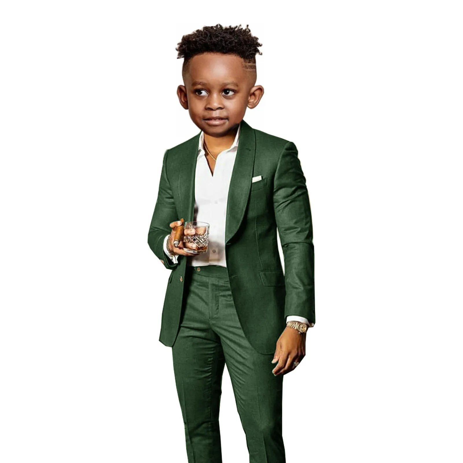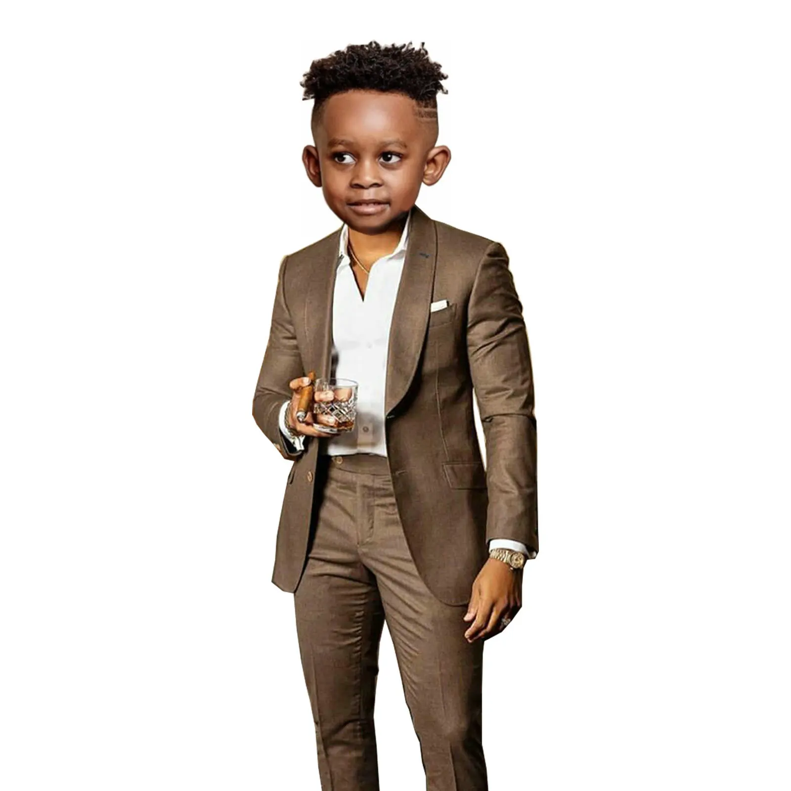 Costume marron pour garçons, 2 pièces, veste, pantalon, col châle, smoking de mariage, vêtements pour enfants, robes formelles de fête à la mode |