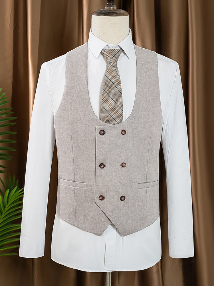 Costume trois pièces Beige gris pour hommes, élégant, coupe cintrée, formel, bureau et loisirs, Banquet, ensemble de marié, robe de mariée |