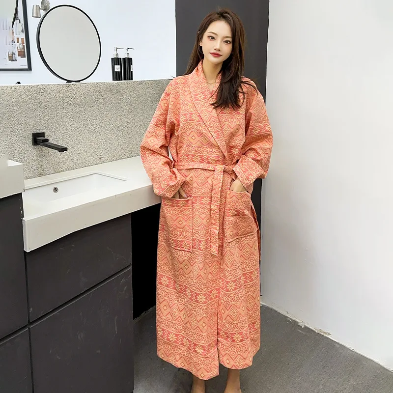 Coton fleur Jacquard chemise de nuit peignoir maison Robe de chambre vêtements de nuit pyjamas doux confortable épais absorbant Terry Robe de bain