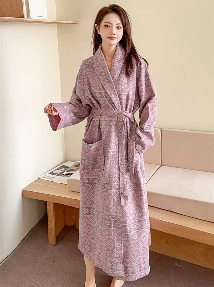 Coton fleur Jacquard chemise de nuit peignoir maison Robe de chambre vêtements de nuit pyjamas doux confortable épais absorbant Terry Robe de bain |