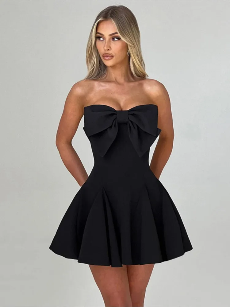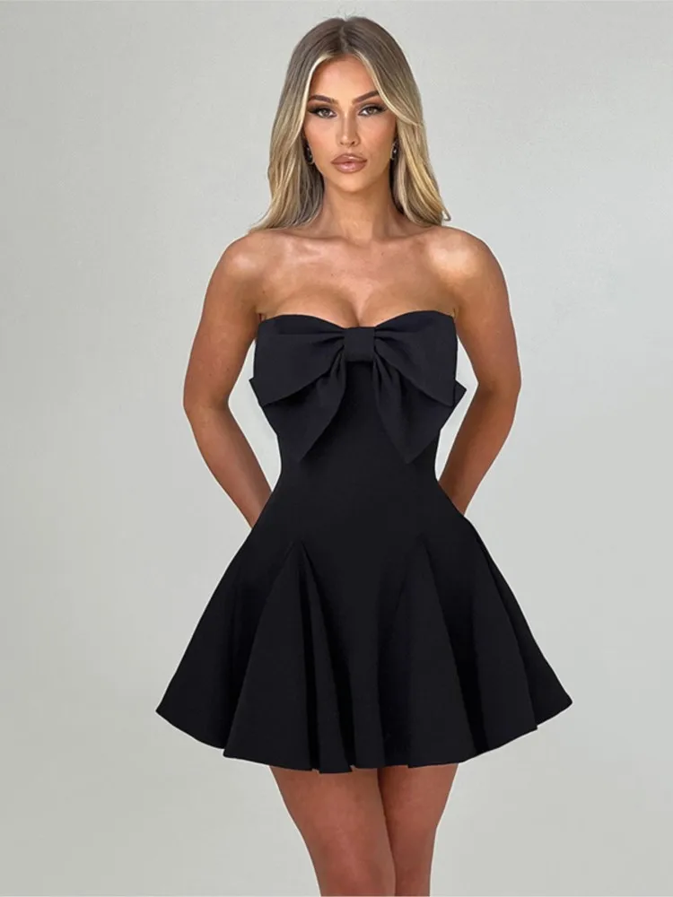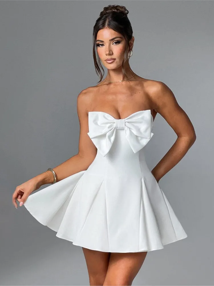 Couleur unie a-ligne robe de soirée femmes Sexy nœud papillon bustier tubulaire Mini robes moulante tempérament été nouvelle dame robes