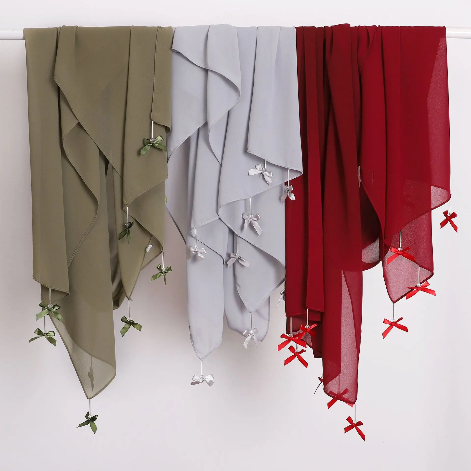 Cousu à la main tube de verre arc plaine mousseline de soie Hijab Ramadan perles foulards châles femmes crème solaire foulard extérieur coupe-vent tête enveloppement