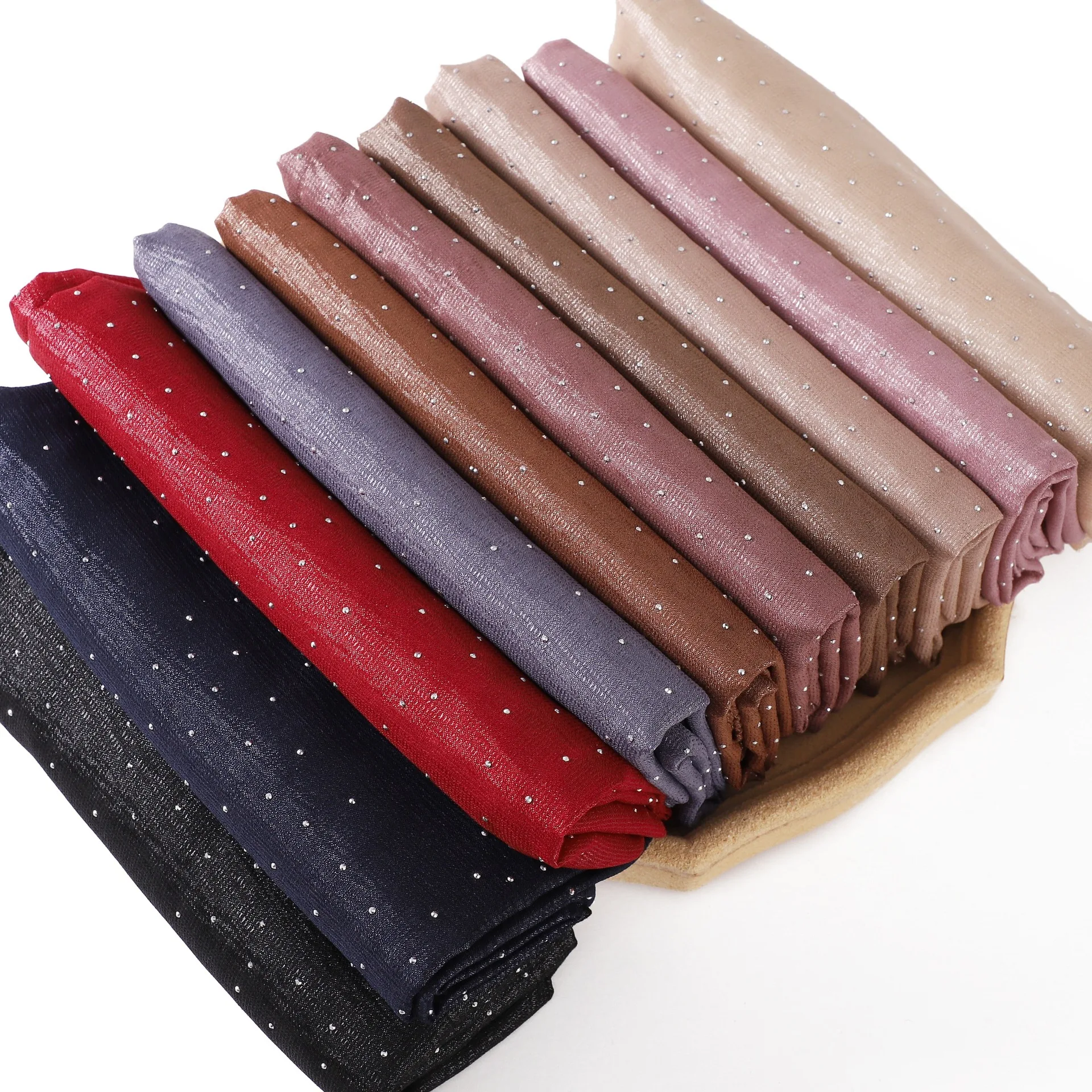 Crinkle plein diamant Hijab musulman Premium Imitation soie écharpe miroitant strass femmes Long châle Foulard Bandanas |
