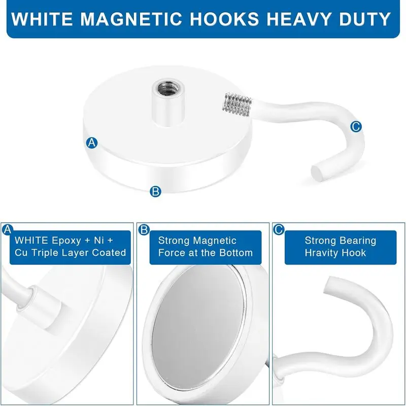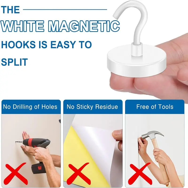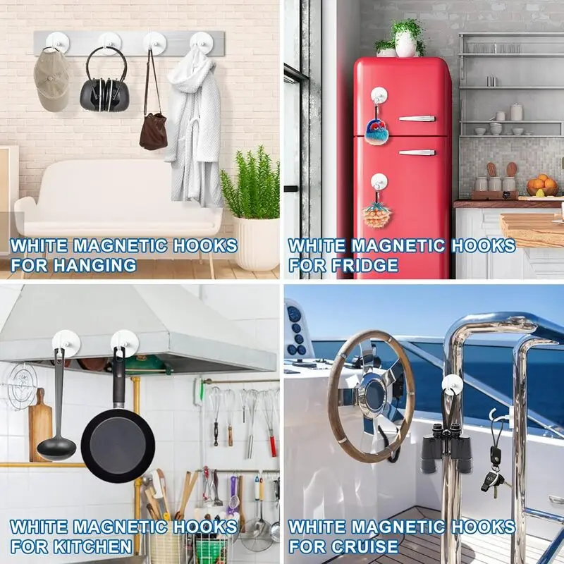 Crochets magnétiques de croisière robustes blancs pour salle de classe, réfrigérateur, suspension, cabines, grill, cuisine, garage, lieu de travail et bureau, etc.