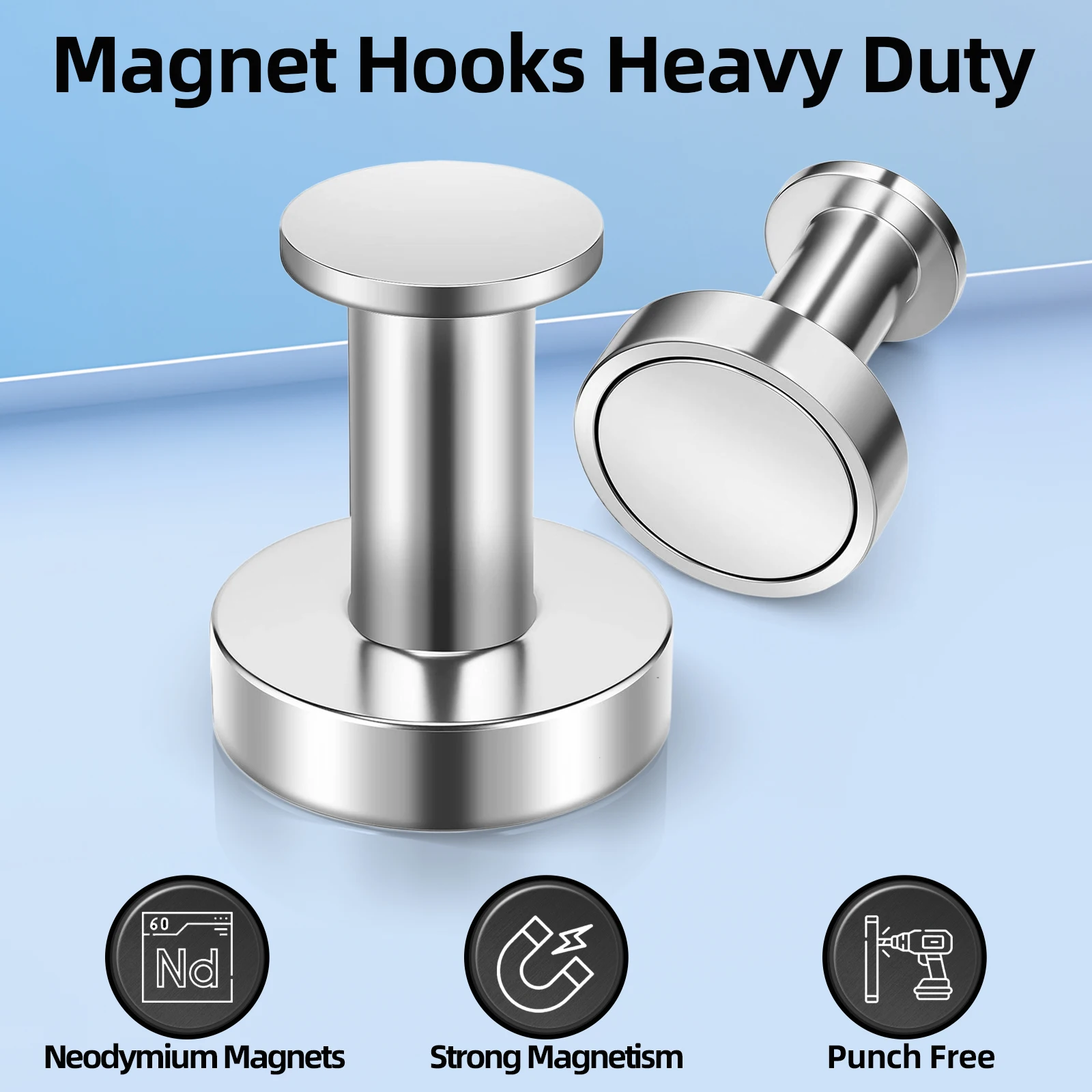 Crochets magnétiques pour suspendre des manteaux et des sacs, crochets magnétiques argentés robustes pour la maison, les voyages, poussoirs circulaires puissants