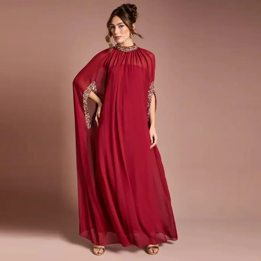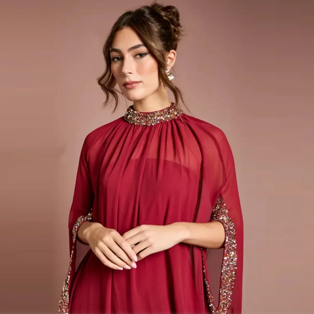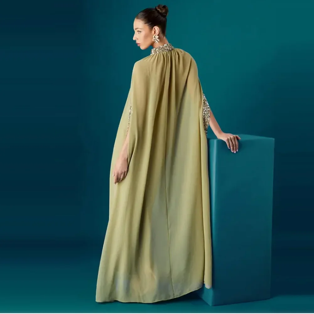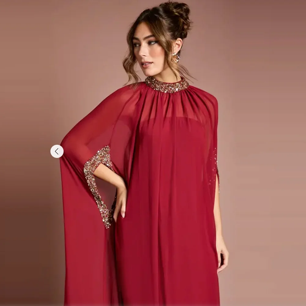 Customized Saudi Arabia Evening Gowns Two Pieces Prom Dresses Chiffon High Neck Middle East Beads Formal Occasion Party Dresses |