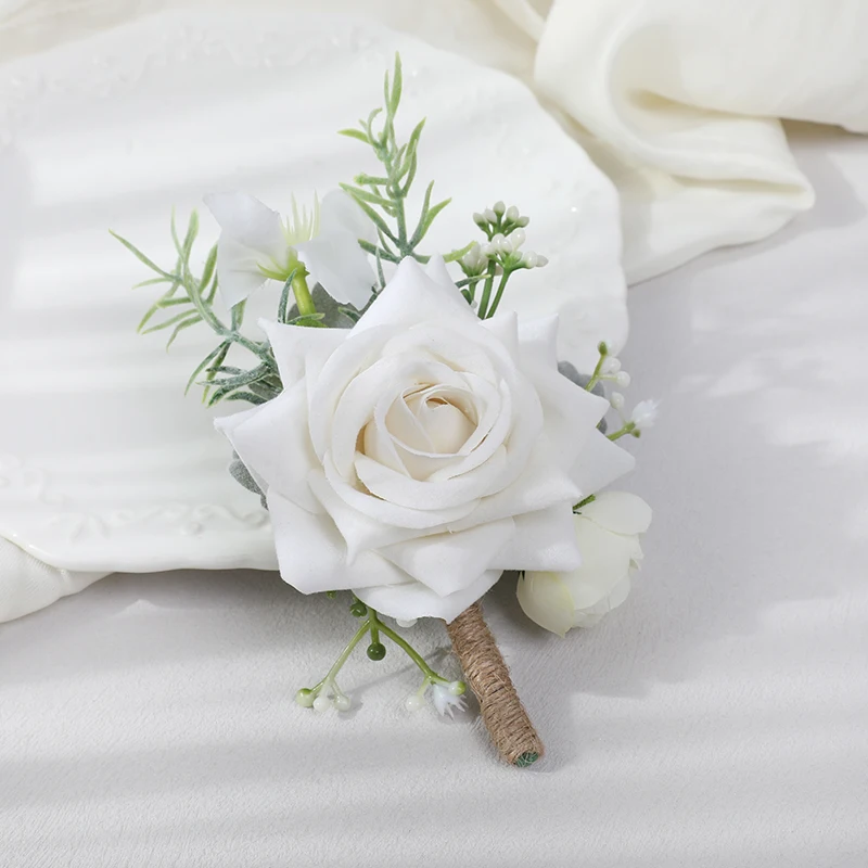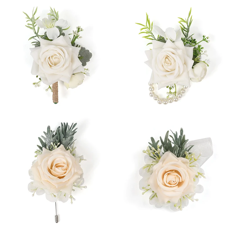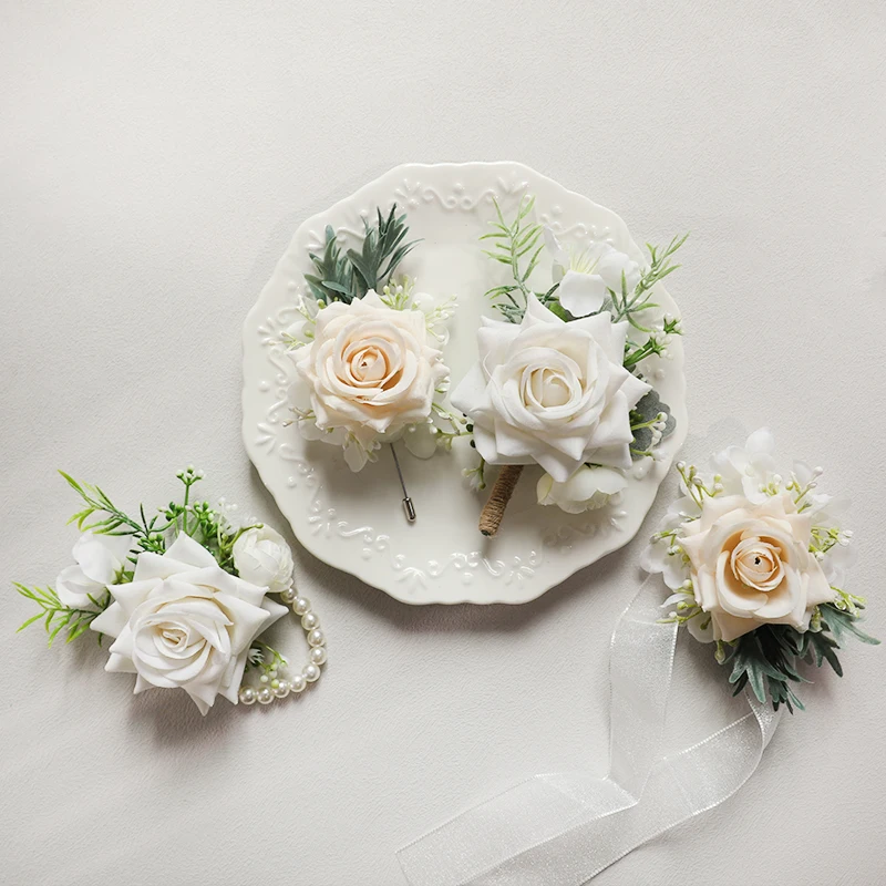 Décoration florale de poignet de mariage, Bracelet en perles de Rose en soie, fleurs à main, costume de marié, Corsage, broche de fleur, cadeau de demoiselle d'honneur |