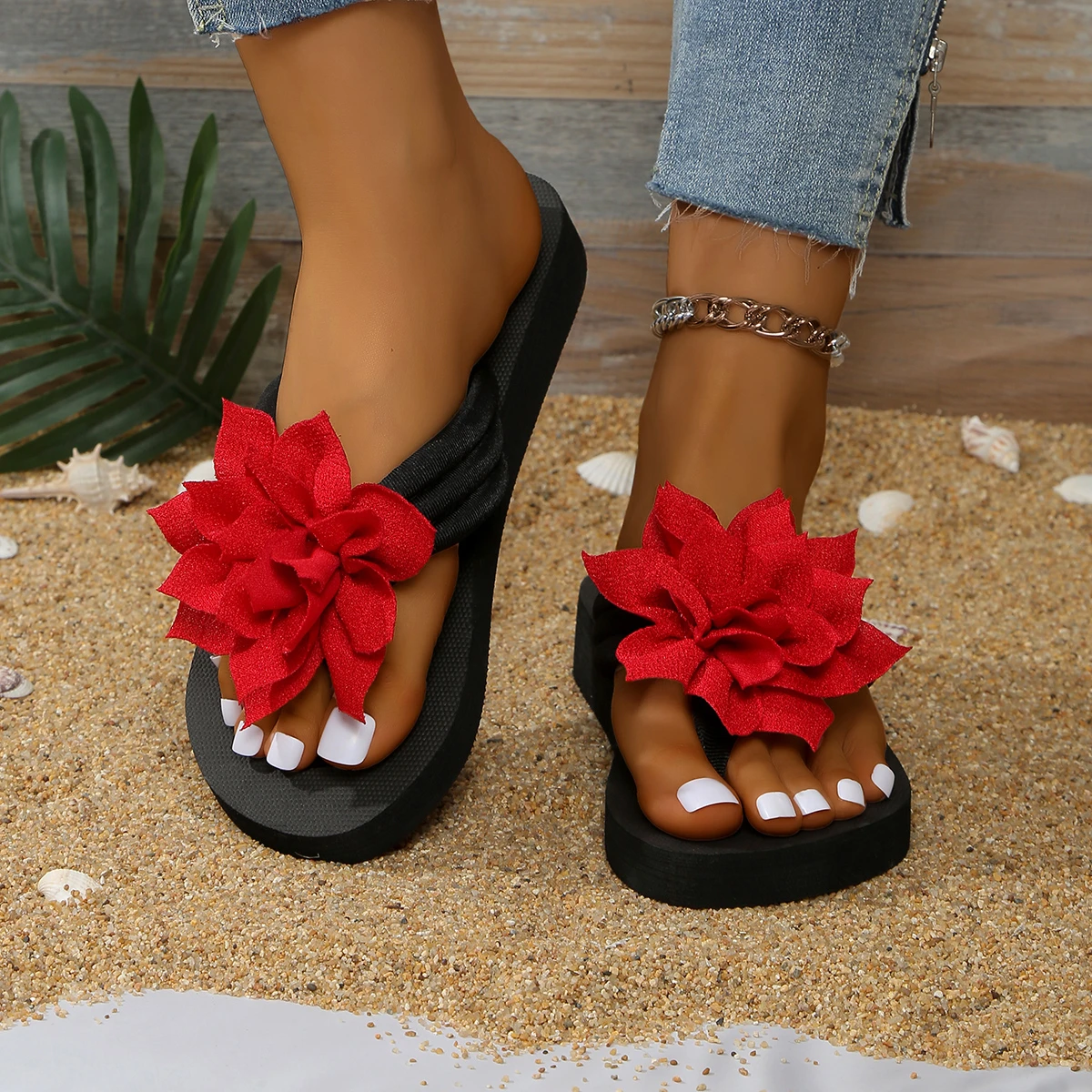 Décoration pantoufles plates décontractées chaussures pour femmes diapositives nouvel été en plein air plage tongs mignon fleur sandales confortables |