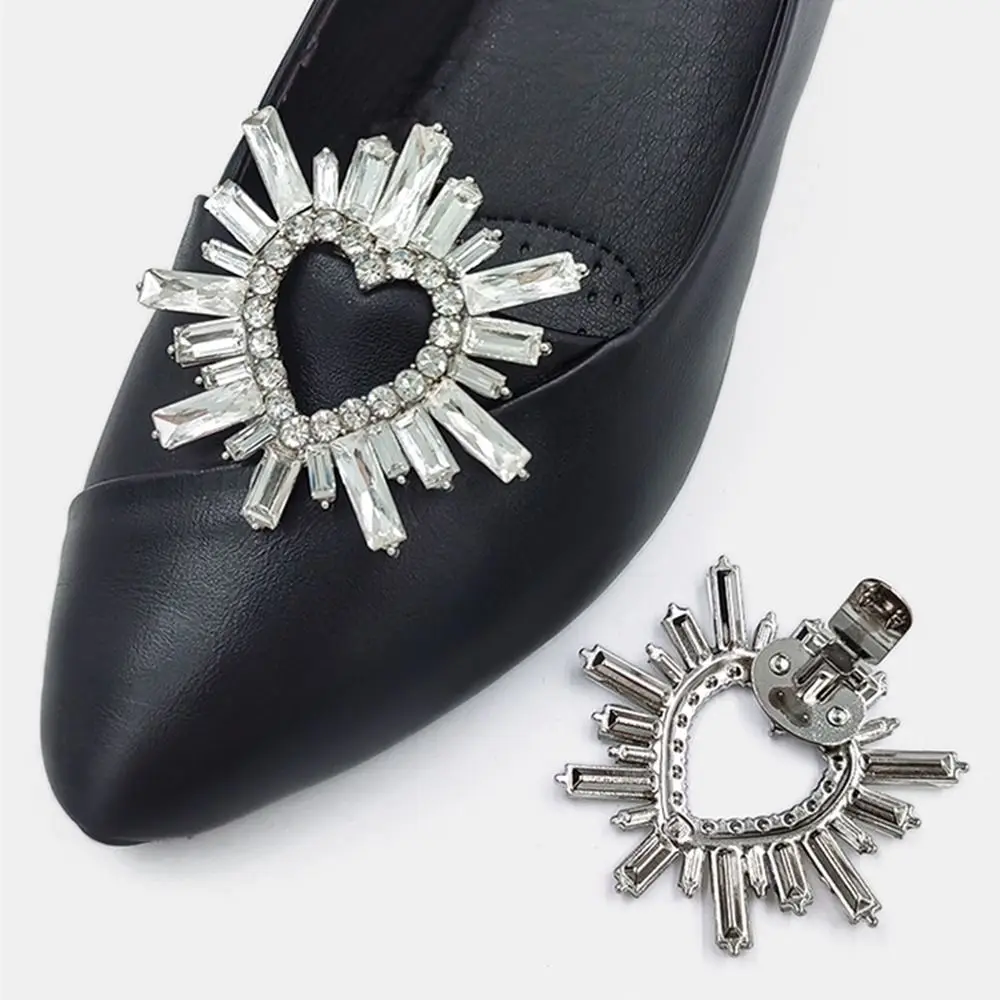 Décorations de chaussures de mariée de mariage, Clip en verre cristal strass brillant, talon haut, fleur amovible, boucle à breloques pour femmes |