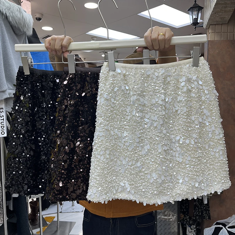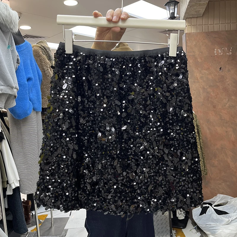 Demi-jupe à paillettes pour femmes, ligne a, courte, perles scintillantes, jupes portefeuilles aux hanches, 2025 |