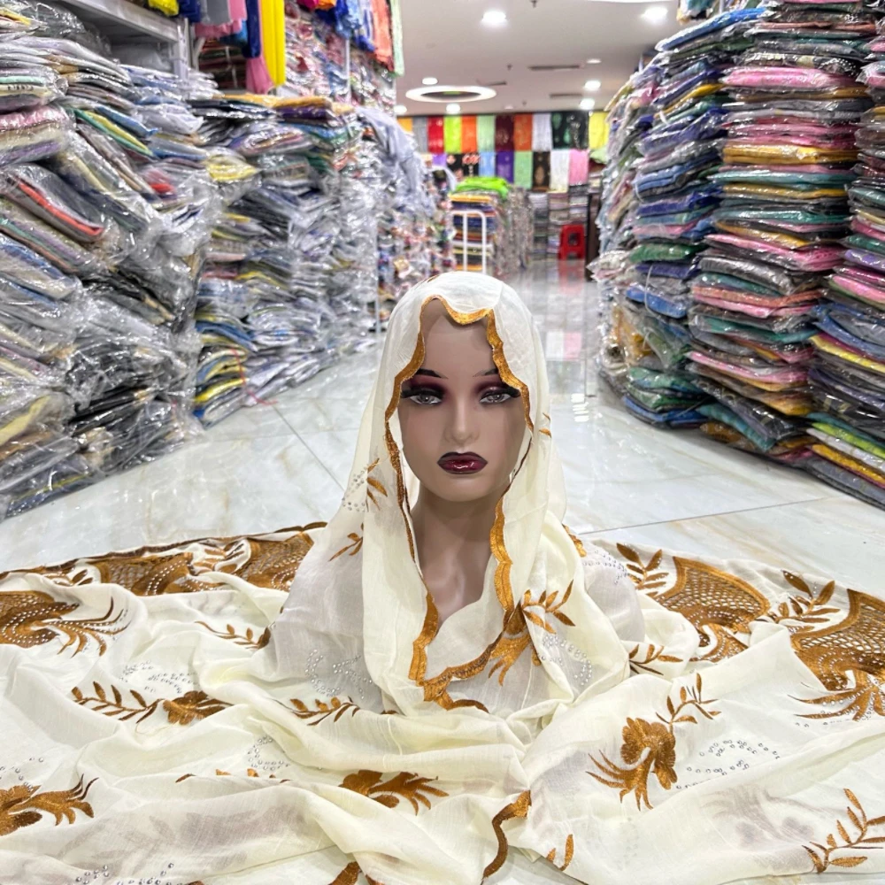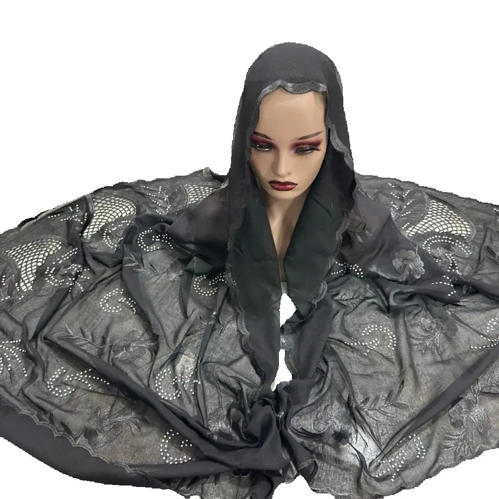 Dernière broderie musulmane mode Hijab femmes africaines haute qualité pas cher coton matériel écharpe 200*100 cercle conception pour châles |