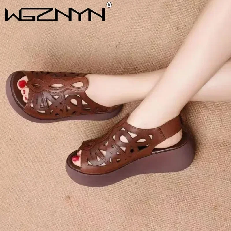 Designer femmes sandales en cuir souple chaussures à semelles compensées pour femmes été rétro sandales de luxe chaussures décontractées femmes talons compensés Sandalias |