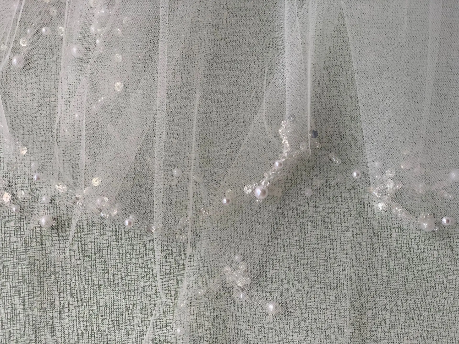 "J'ai été ravie de ma commande de ce voile de mariée court et luxueux. La qualité des matériaux est irréprochable, avec une belle finition et des perles qui apportent une touche élégante. Certes, le voile est légèrement plus court que prévu, mais cela ne nuit en rien à l'ensemble. Je me suis sentie sublime le jour de mon mariage avec ce voile qui a sublimé ma robe. Je le recommande vivement à toutes les futures mariées à la recherche d'un accessoire chic et de qualité."