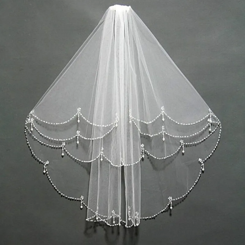 Deux couches coude longueur voile perles bord mariage voile de mariée court luxe blanc ivoire mariée voiles |